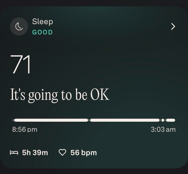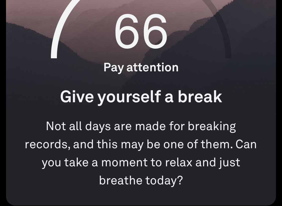 I check the app more often, partly because it has more to tell, and also because the insights feel more focused, reinforcing when I’m feeling off, nudging me to rest when I might otherwise power through burgeoning illness or injury.